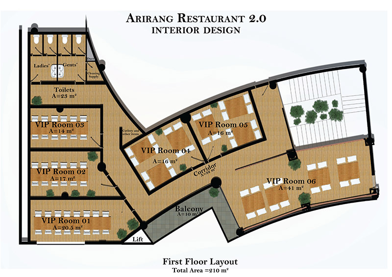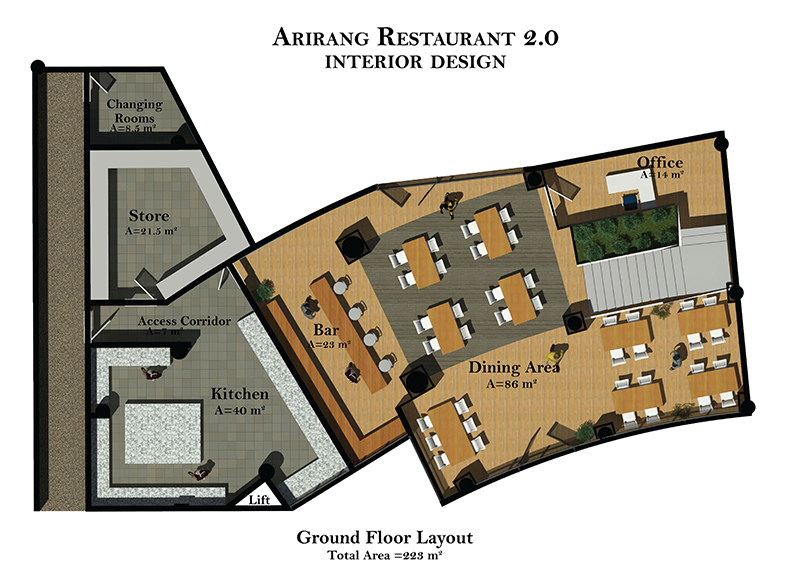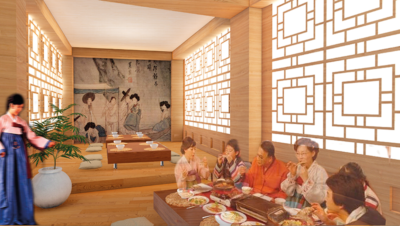 Client: Arirang Korean Restaurant PLC Project: Interior Design with Korean ThemeDescription: “Warm and vibrant traditional interior with a play of textures, materials and light - a home away from home.”